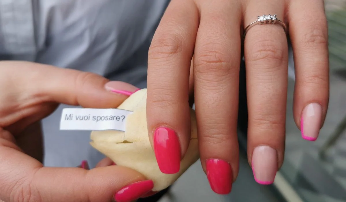 Questa proposta è degna di nota. Si, perchè per la buona riuscita me ne son inventata una di troppo (usanza cinese inclusa). Ho deciso di regalare dei biscotti della fortuna, uno di questi truccato. Dopo aver esaurito tutte le scuse possibili e aver cercato in tutti i modi di convincerla che erano stati acquistati in un panificio, il trucco è riuscito. Alla fine ha detto SI!